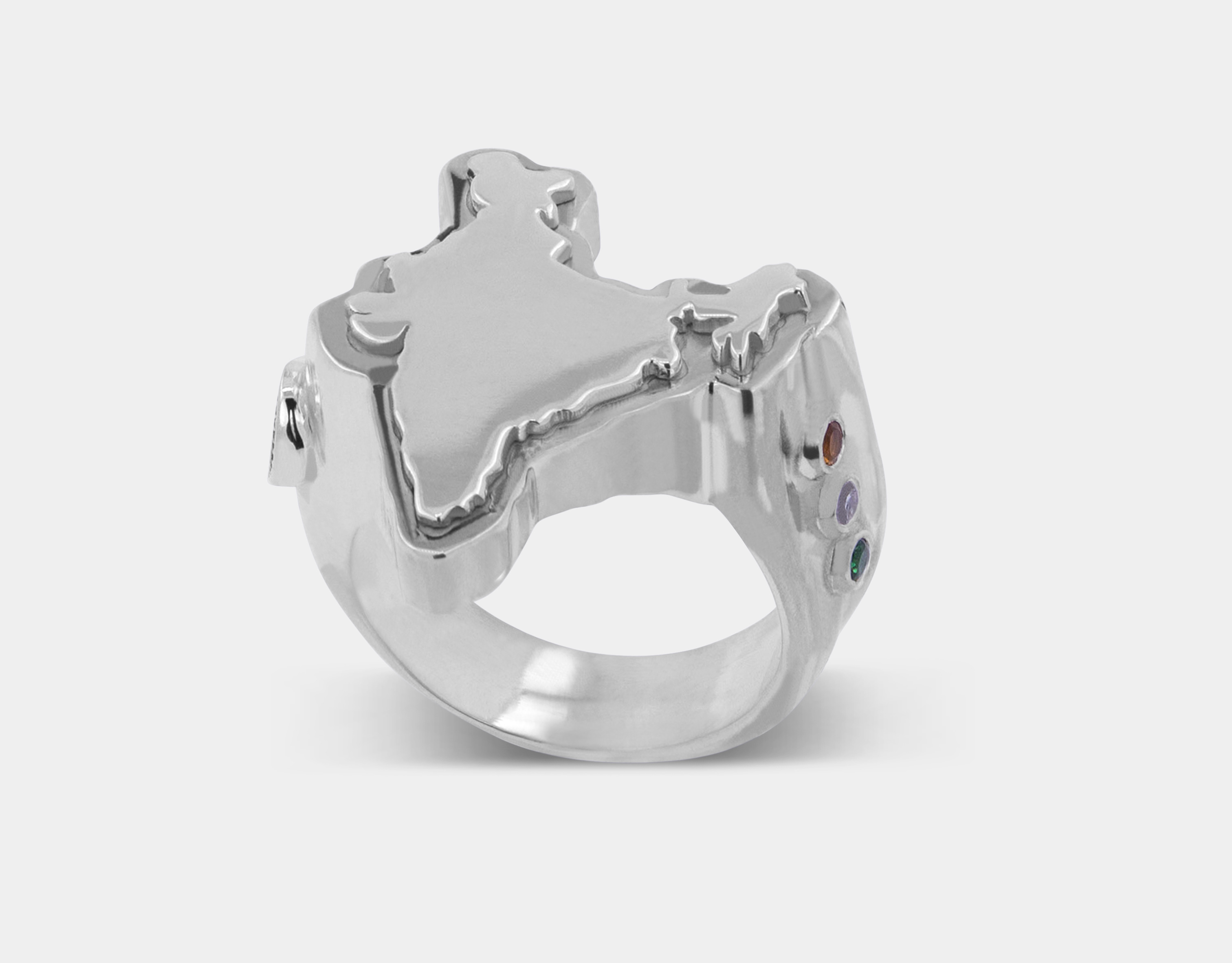 925 Sterling Silver India Ring with a Citrine, Natural Diamond and Green Tsavorite.
