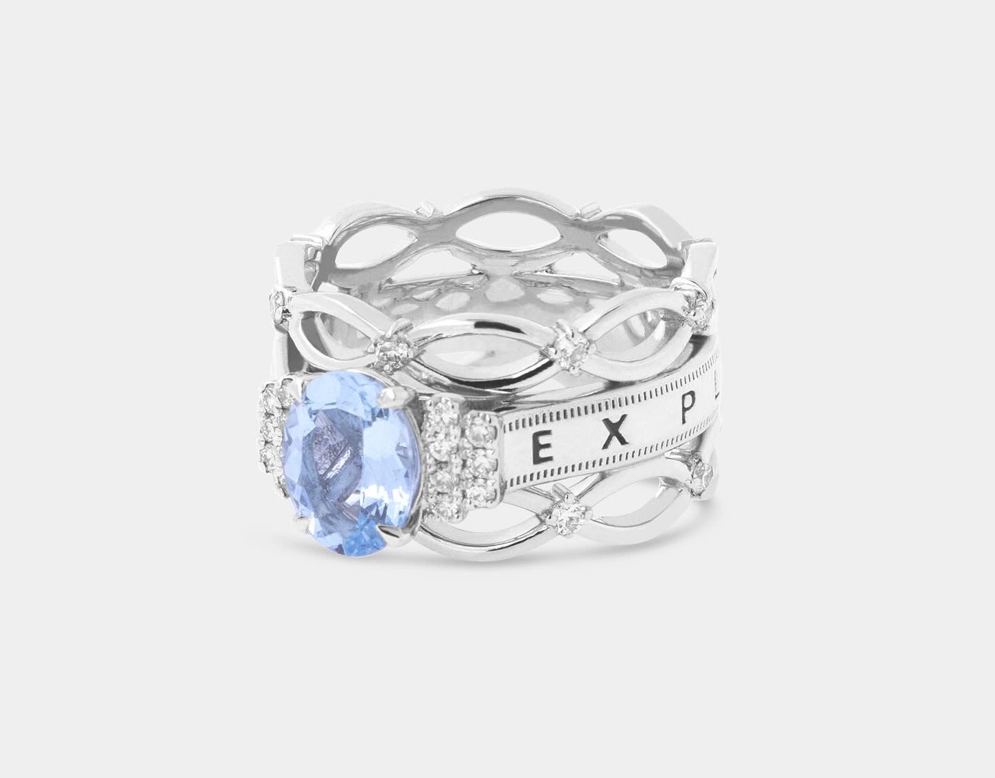 925 Sterling Silver, Diamonds and Aquamarine Engagement Ring