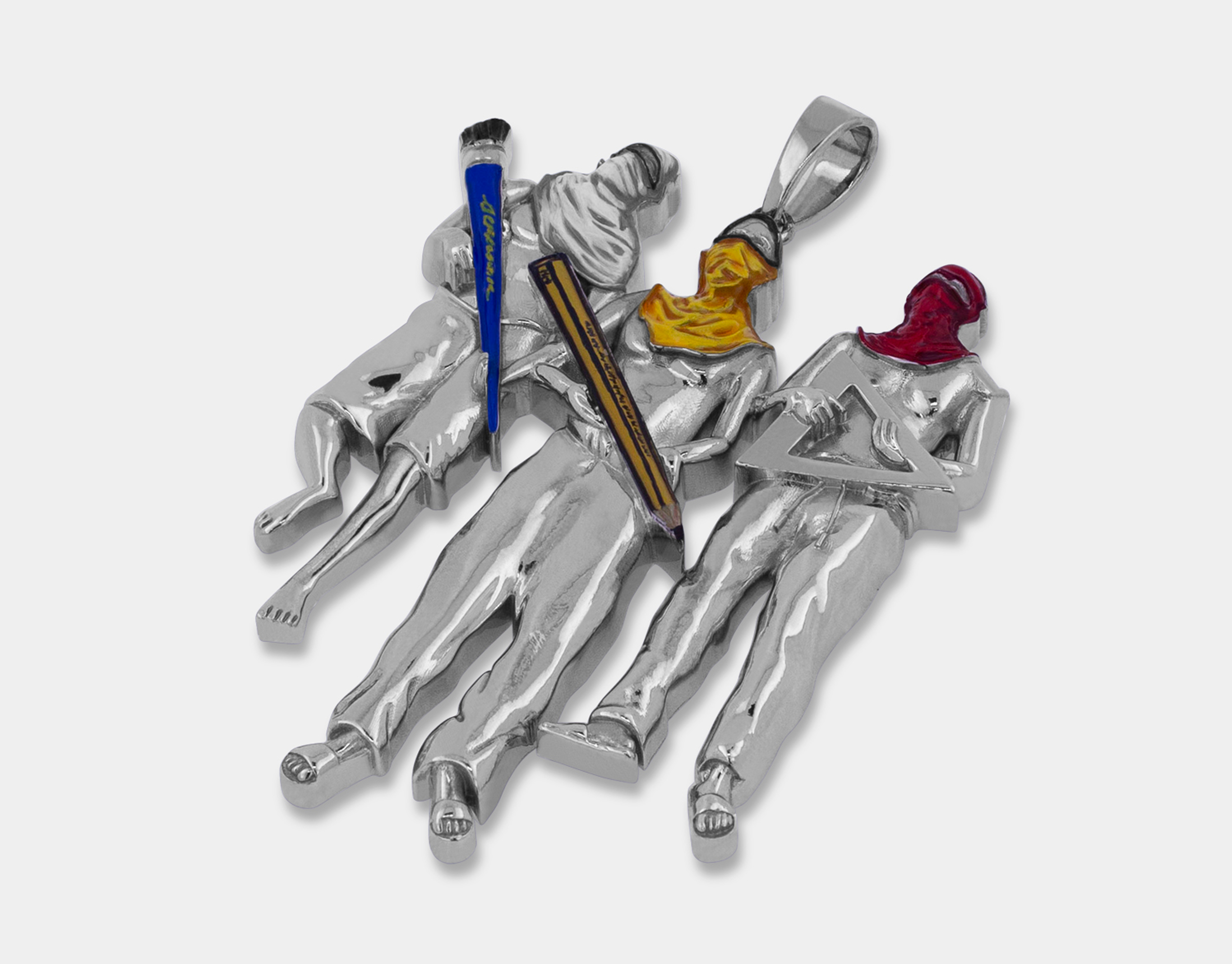 Custom pendant designed for Yung Fume with Aquamarine and Citrine stones combined with detailed enamel