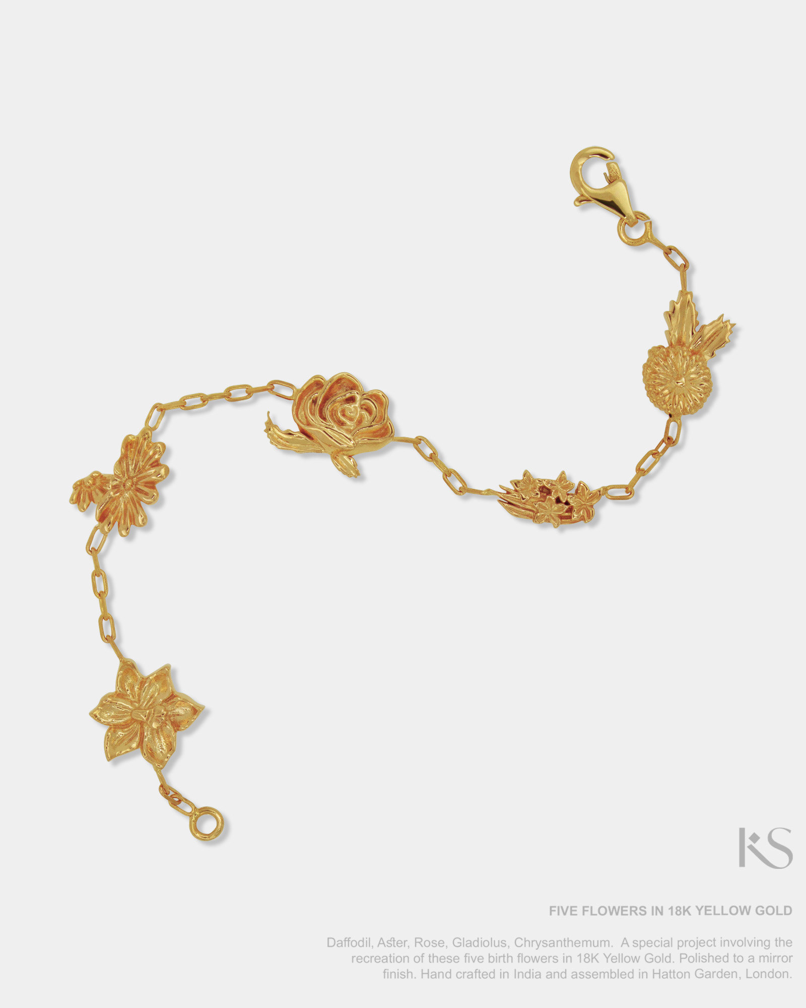 8K Yellow Gold, 5 Flower Bracelet designed and hand finished for a special client πΊπΌπ·πΈπΉ