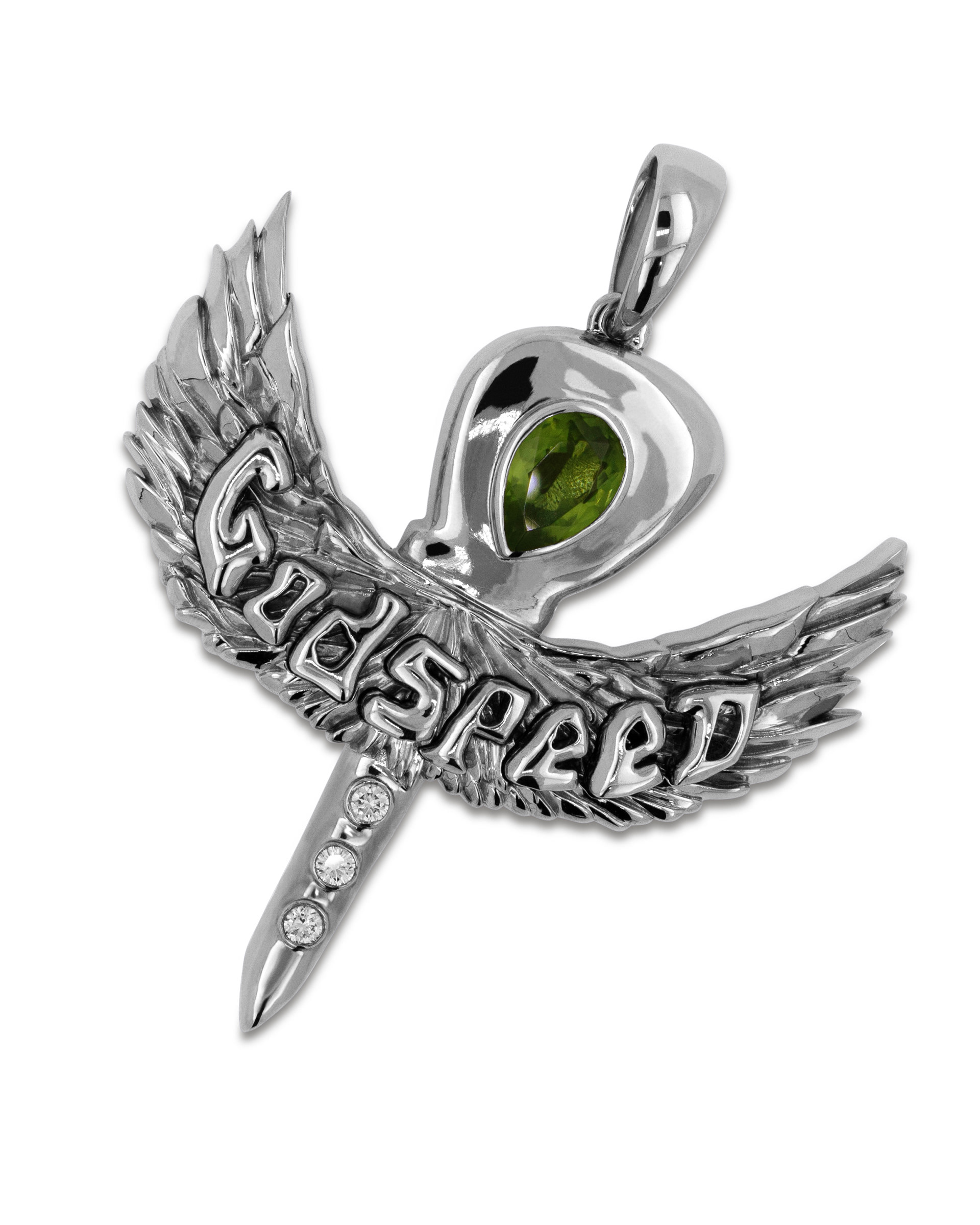 The Godspeed Ankh Pendant! Hand crafted in 925 Sterling Silver with a teardrop green peridot set into the top! Made in nine separate parts and individually soldiered together.